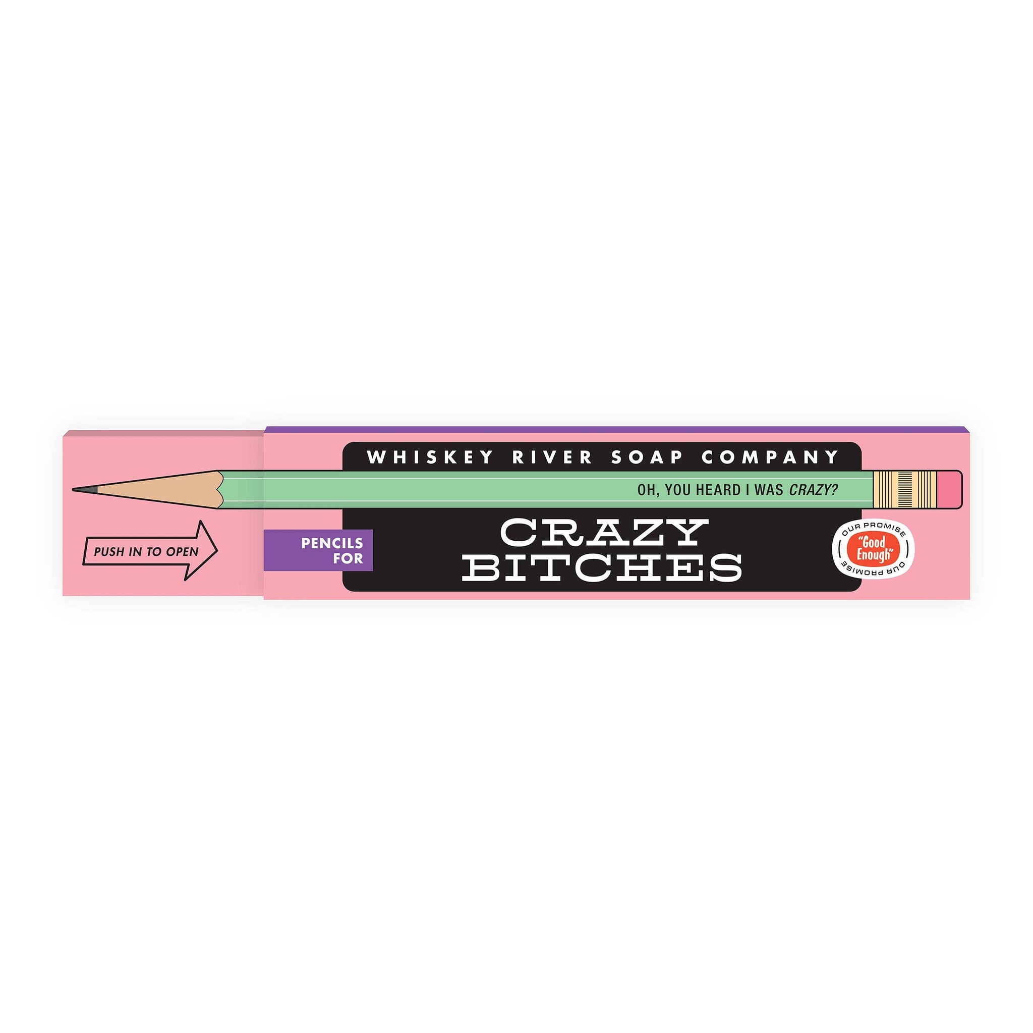 Crazy Bitches Pencils 8-pack Standard No. 2 Pencils * don't make me take my hoops out * half my paycheck goes to my nails * drunkest "B" at the party * round of shots! * oh, you heard I was crazy? * I hate you! Love you, boo * I'm not mad * *throws drink in your face* 8-pack Standard No. 2 Pencils Made in the USA Box Size: 7 ½" H x 2 ½" W x ⅜" L Sold in 4-packs